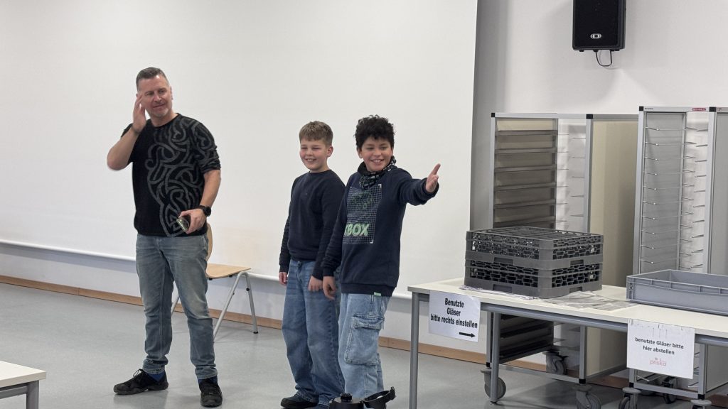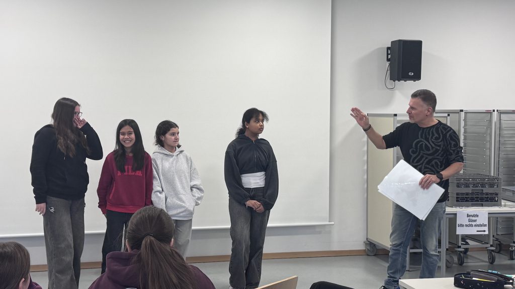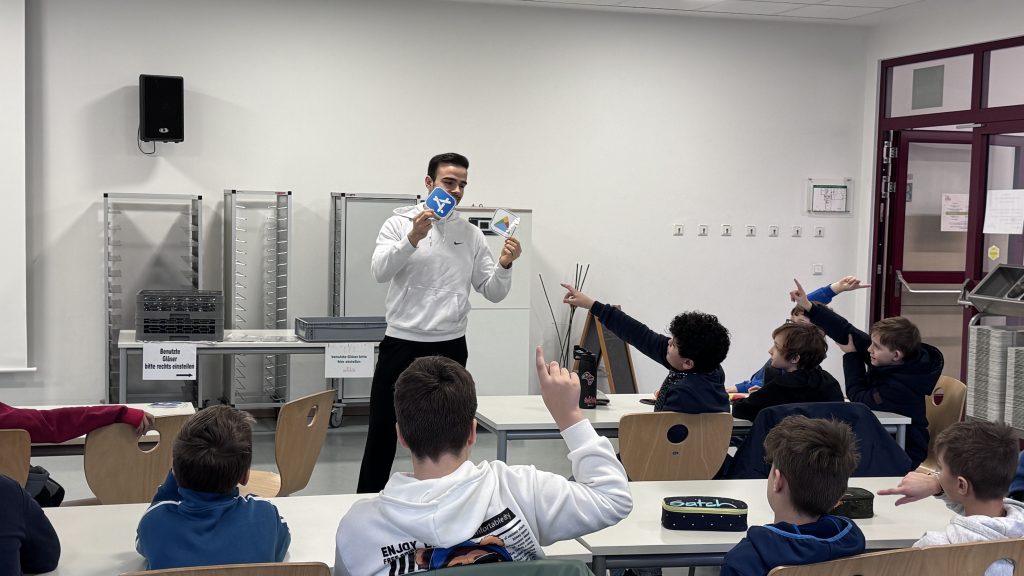 Da alle Klassenräume durch weitere schulische Veranstaltungen belegt waren, fand der erste Vortrag in der Schulmensa statt. Diese besondere Umgebung sorgte für eine angenehme und offene Atmosphäre. Nach einem kurzen Einstiegsvideo führten die beiden Polizeibeamten, Herr Hosenfeld und Herr Sevim, kindgerecht und lebensnah in das Thema ein.