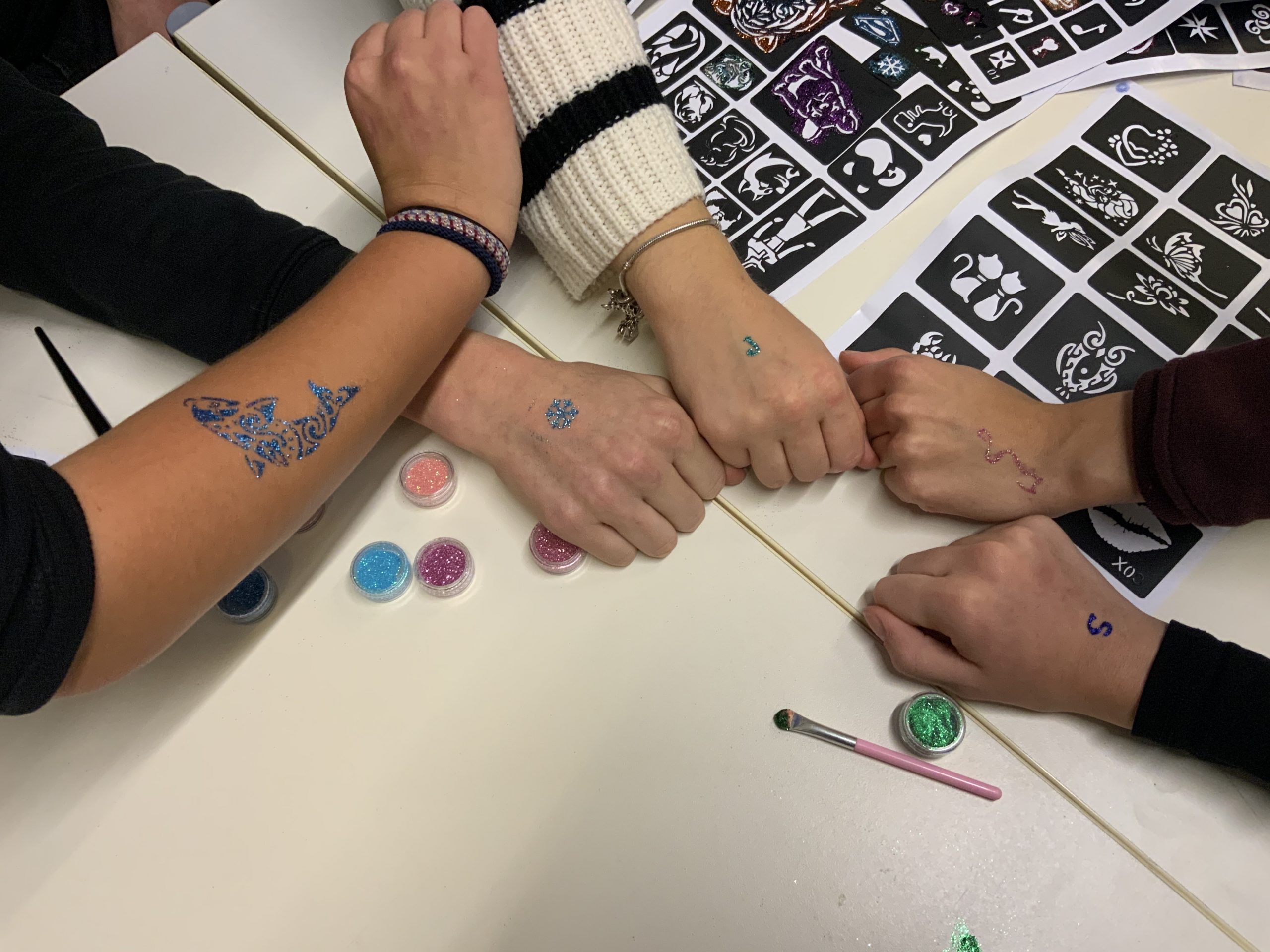 Für das herzhafte leibliche Wohl sorgte der RSB-Elternbeirat mit heißen Hot Dogs, knusprigen Brezeln und Käse-Stangen. Die selbst bedruckte Schulkleidung, angeboten von der T‑Shirt-Firma, sorgte für fröhliche Farben und stolze Trägerinnen und Träger. Glitzertattoos der Klasse 9c brachten funkelnde Akzente auf die Haut der Schülerinnen und Schüler und ließen die Stimmung noch heller erscheinen. Außerdem fanden auch kreative Werkstücke aus dem Fundus der Schülerarbeiten eine/n neue/n Besitzer/in.
